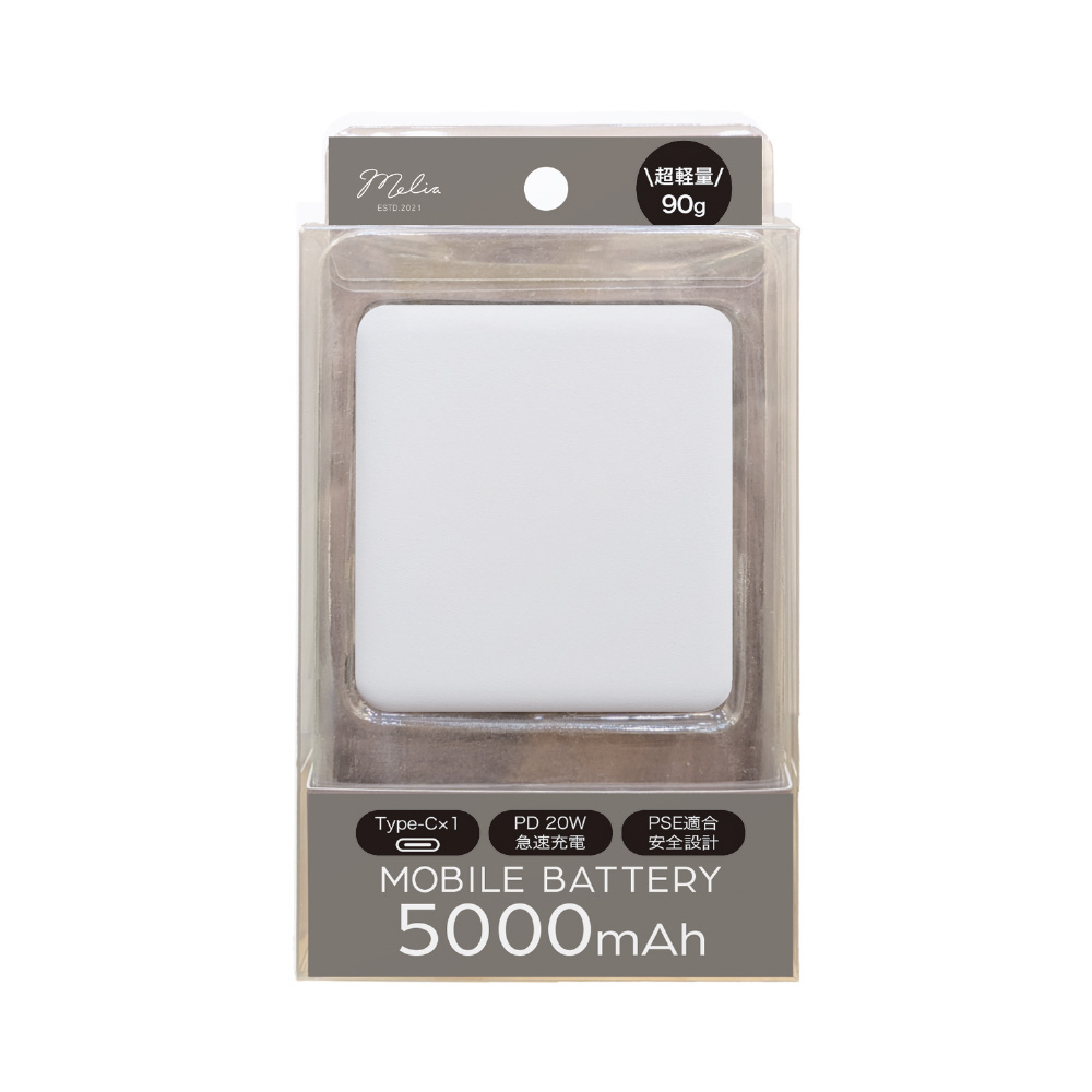 超軽量モバイルバッテリー5000mAh PD20W WH [USB Power Delivery対応 /1ポート]