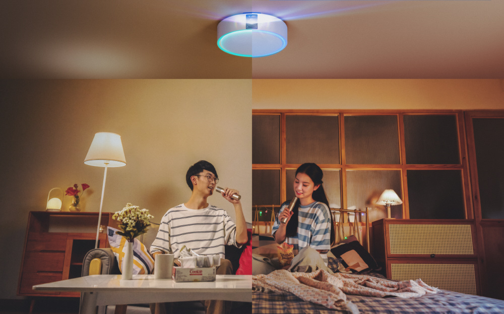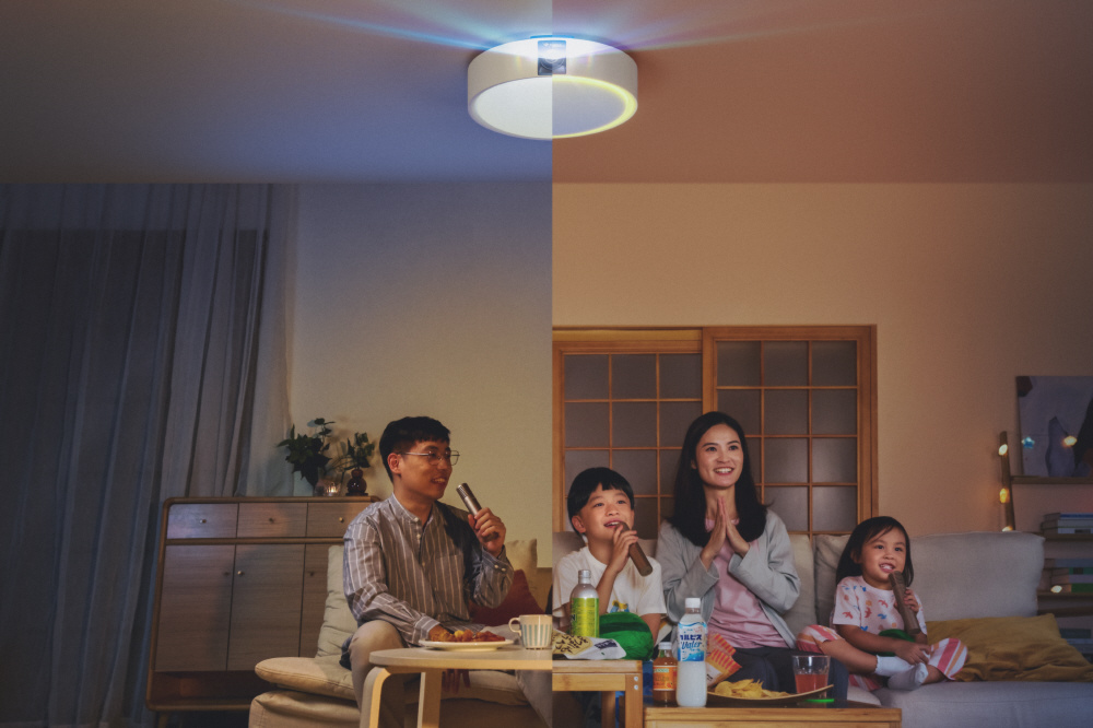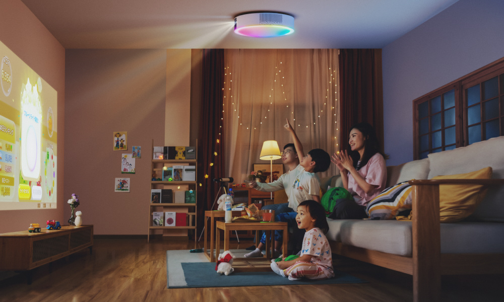 気軽におしゃれに使える3 in 1のシーリングプロジェクター。MEMC機能搭載でより滑らかな映像を実現。