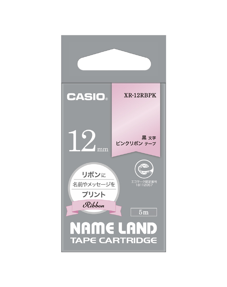 ラベルライターNAME LAND用テープ  リボンテープ ピンク XR-12RBPK [黒文字 /12mm幅]