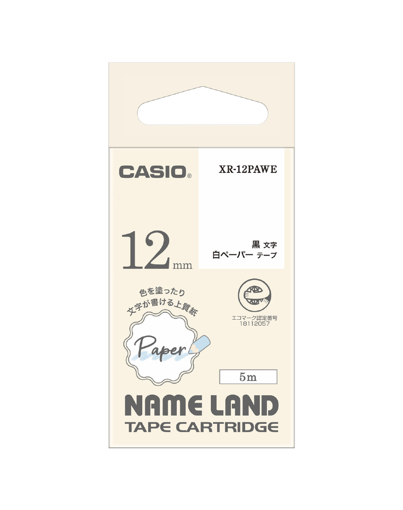ラベルライターNAME LAND用テープ  ペーパーテープ 白 XR-12PAWE [黒文字 /12mm幅]