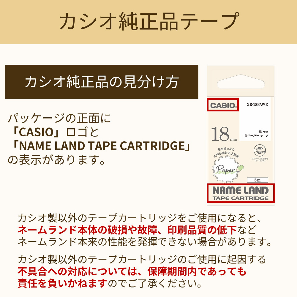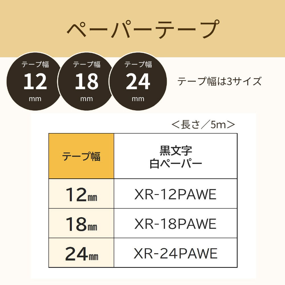 ラベルライターNAME LAND用テープ  ペーパーテープ 白 XR-18PAWE [黒文字 /18mm幅]