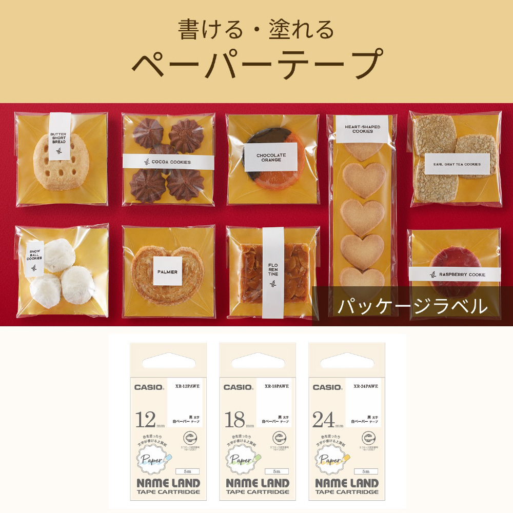 ラベルライターNAME LAND用テープ  ペーパーテープ 白 XR-24PAWE [黒文字 /24mm幅]