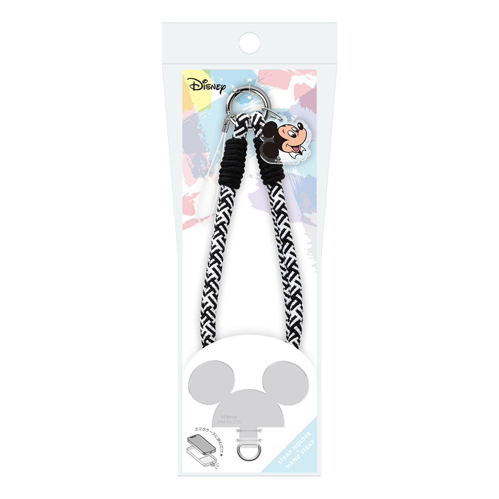 ディズニーキャラクターデザインのカラフルなロープタイプのストラップホルダー付きハンドストラップです。