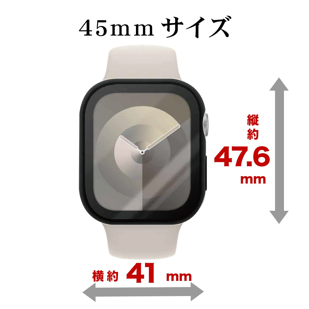 Apple Watch Series 8/7 45mm用 ガラス+PC一体型 防水ケース IPX68 ブラック GHB4628AW45