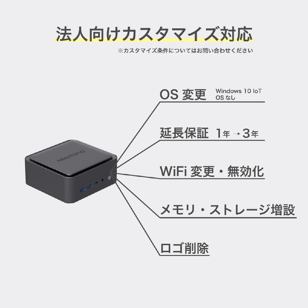 最新のThunderbolt 4ポートを搭載するほか、USB 3.2 Gen2 Type-Cや2.5G LANポートを備え、小型でありながらデスクトップPCとして多数の周辺機器を接続可能です。