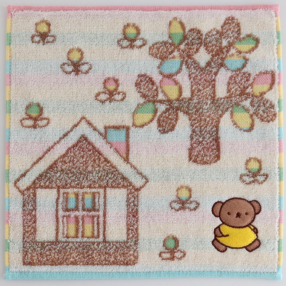 冒険心いっぱいで少しおっちょこちょいなくまのボリス。そんなボリスのおうちをデザインしたミニタオルです。
