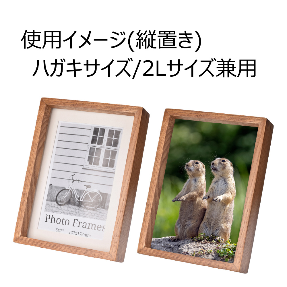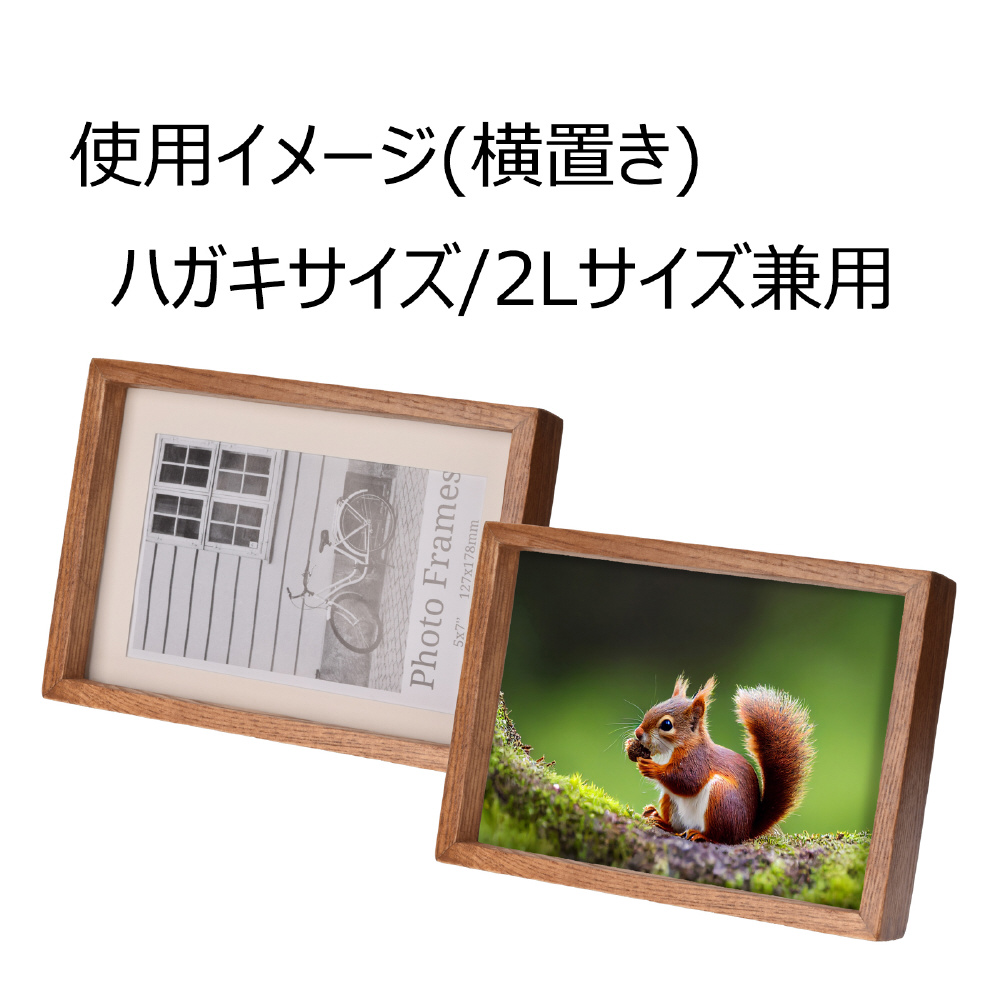 ハガキサイズ、2Lサイズ兼用の木製フォトフレーム