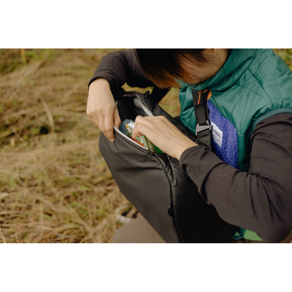 メインコンパートメントへは、バッグ上部の大きく開く開口部と両側面のジッパーからアクセスができます。