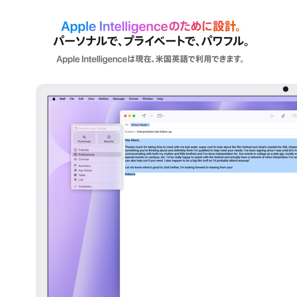 Apple Intelligenceのために設計。時代に新しい息吹を。