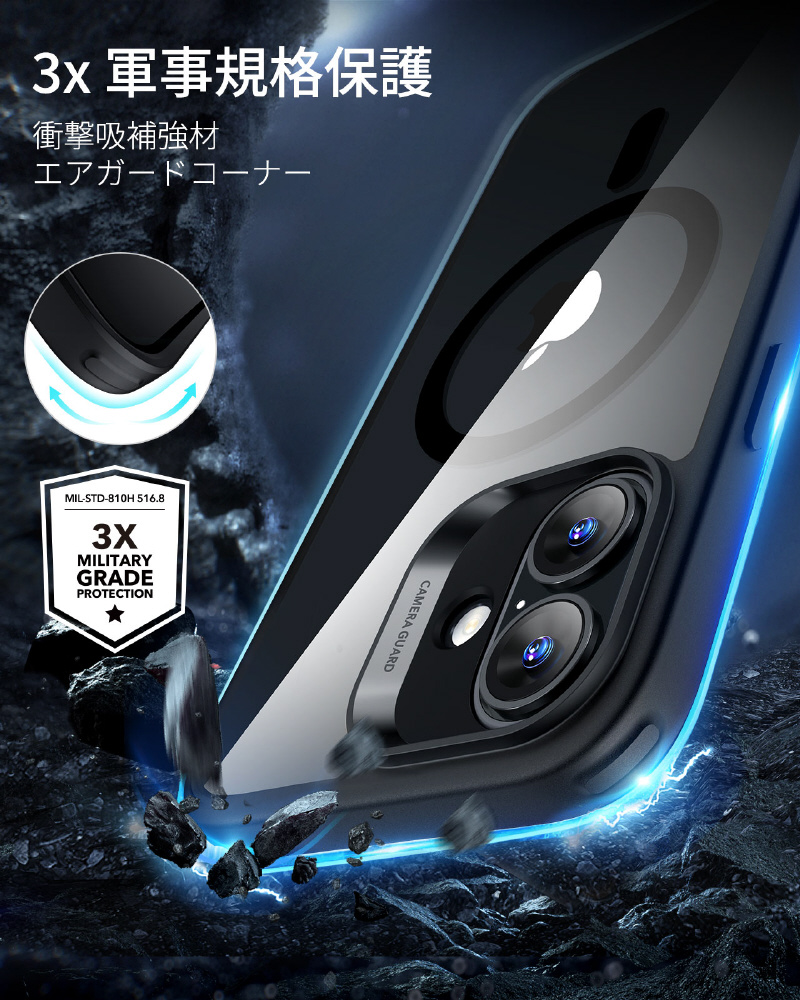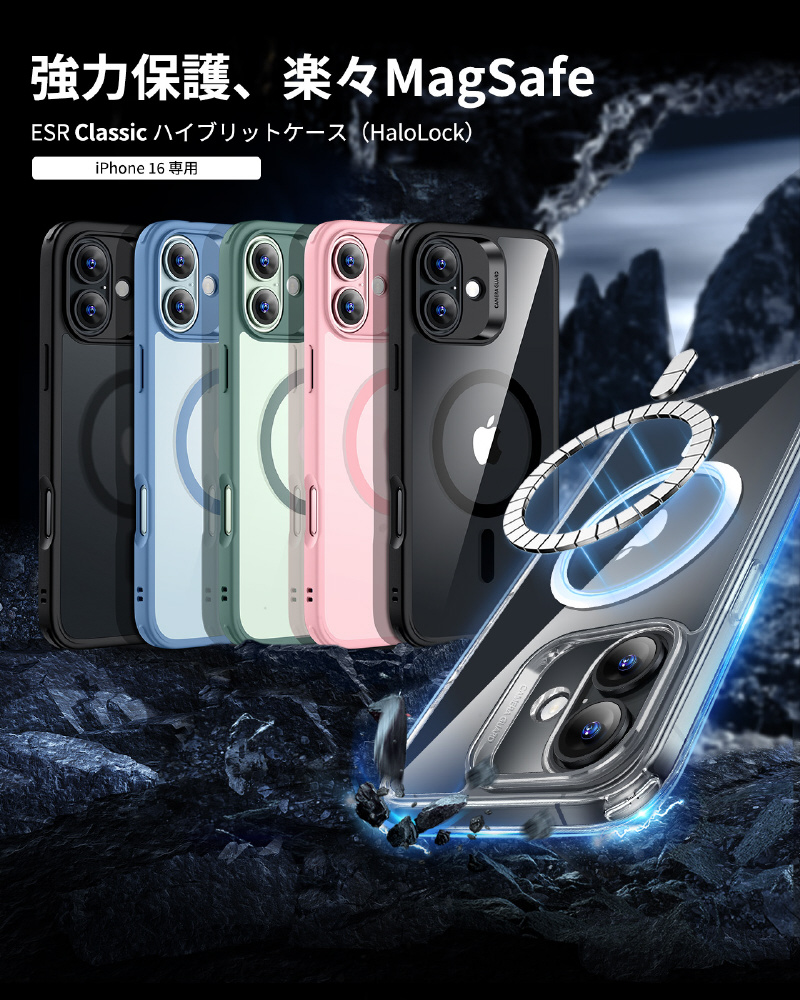 iPhone 16(6.1インチ)マグネット対応、ミリタリーグレードケース ESR Clear Black ESRClassicHybridCase(HaloLock)iPhone16