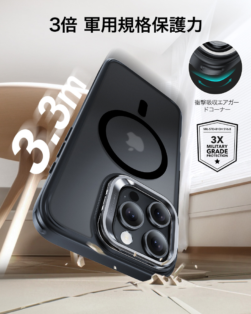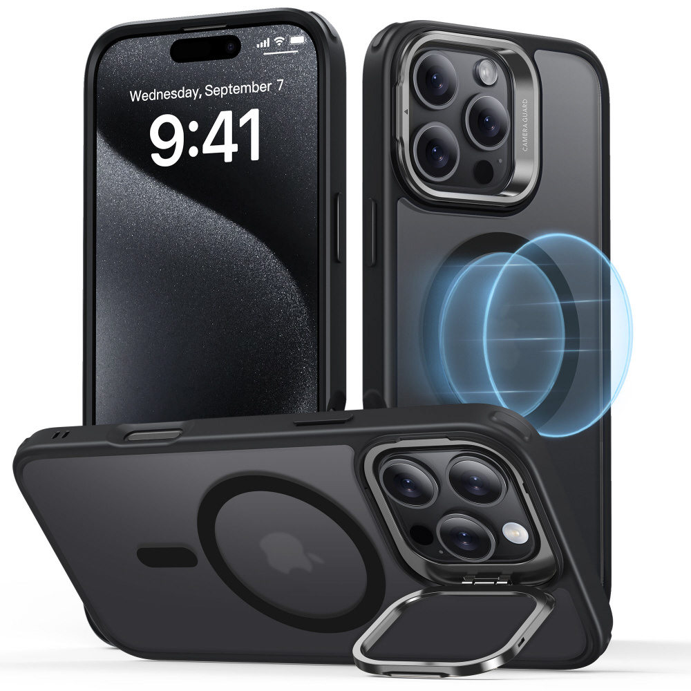 iPhone 16 Pro Max(6.9インチ)スタンド付ハイブリッドケース ESR Frosted Black ClassicHybridCaseStashStandforiPhone16ProMax