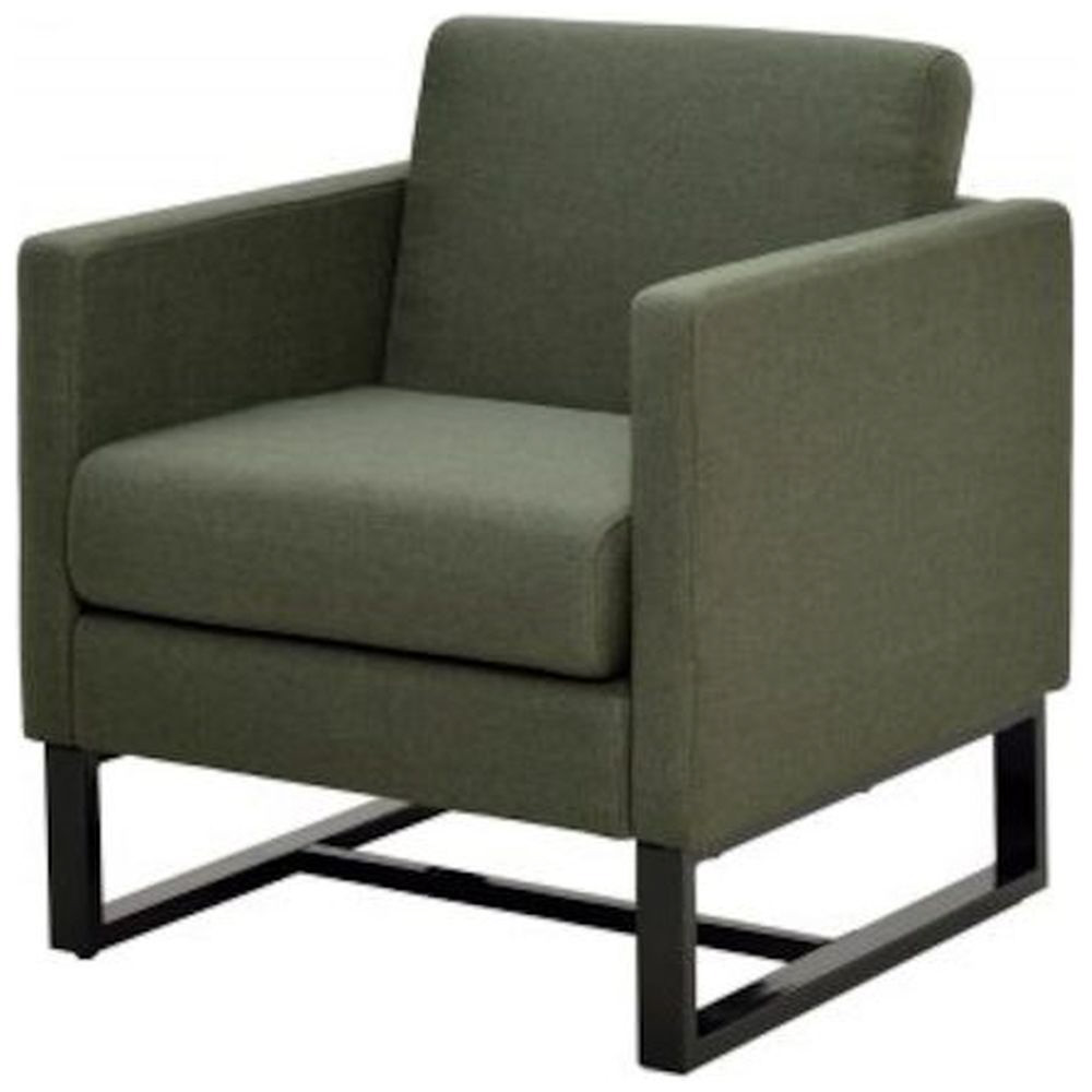 応接室や待合空間、リビングに適したスクエアソファ1人掛け。グリーンのファブリックでカジュアルな雰囲気を演出します。