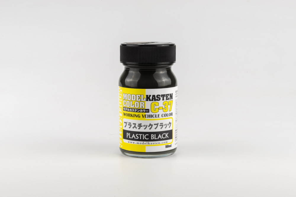 プラスチックブラックは、車などの無塗装の樹脂バンパー、ダッシュボードにみられる独特の素材感とツヤを再現した塗料です。