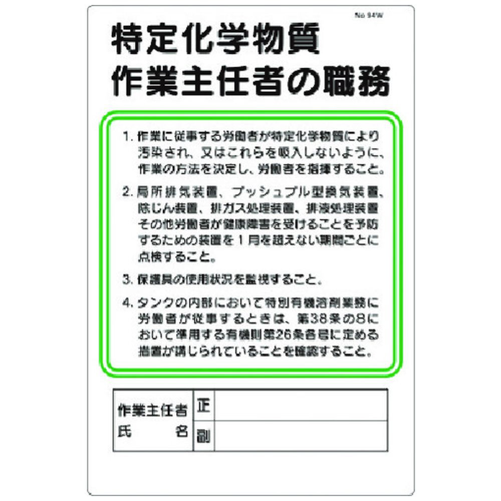 ・表示内容: 特定化学物質作業主任者の職務
