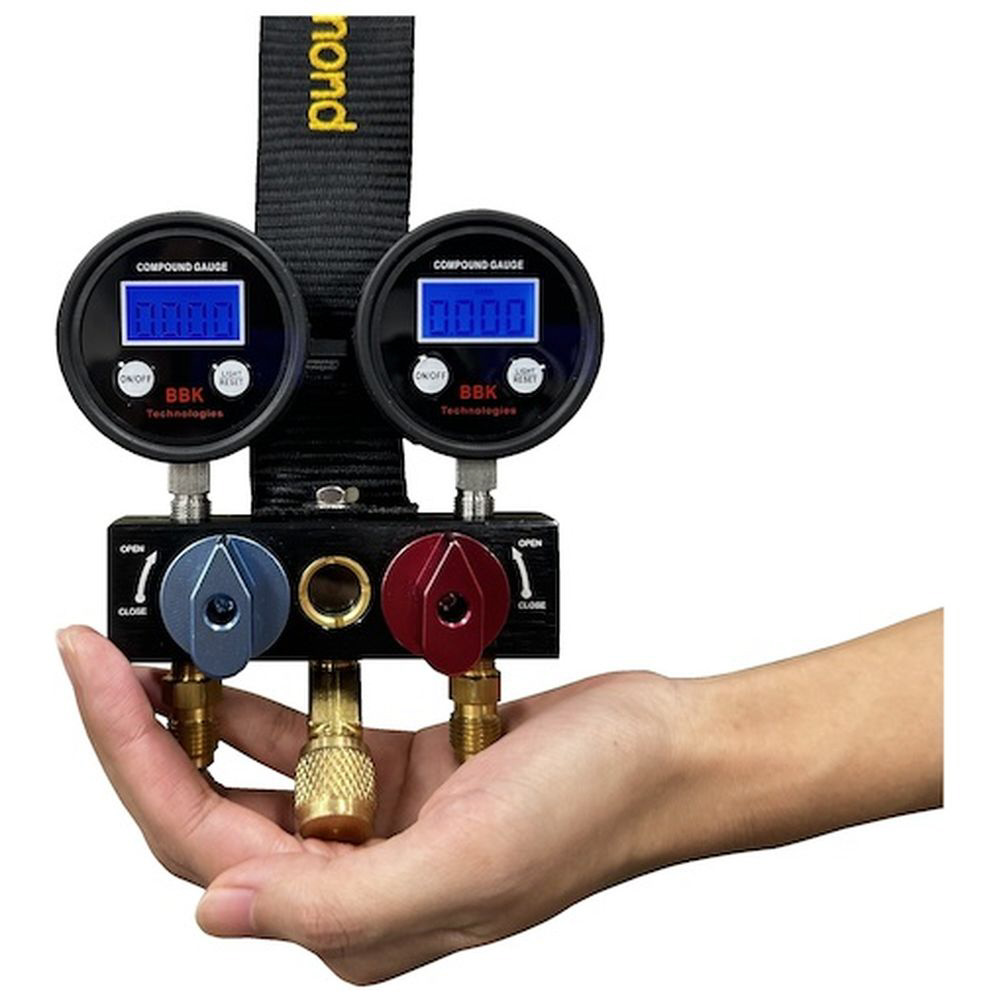 ■寸法140×130mmのミニサイズマニホールド(ストラップ除く)。