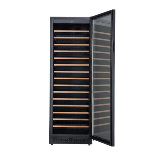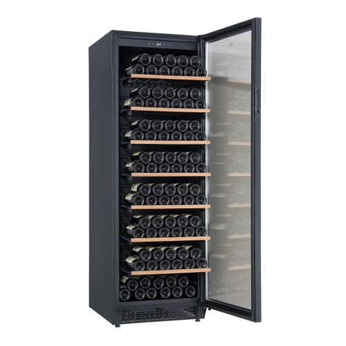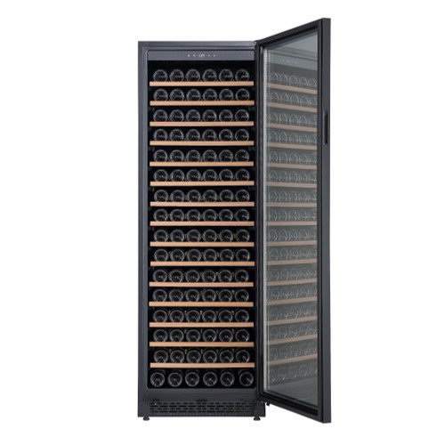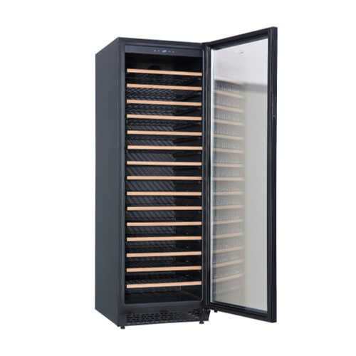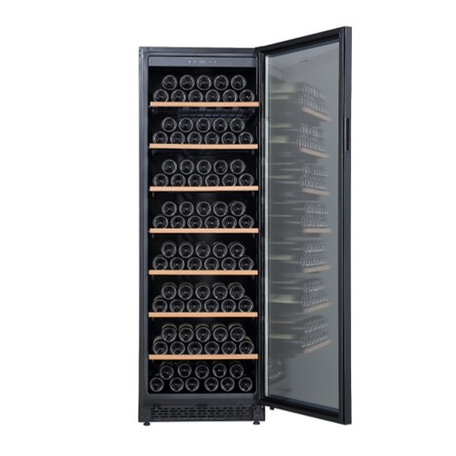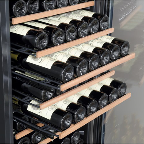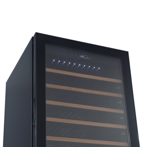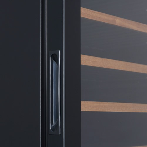 シンプルかつスタイリッシュなガラス扉に、高い安全性を確保するサイドガードを装備しています。前面排気により放熱スペースを最小限にし、据置きだけでなくビルトイン設置も可能です。使い勝手と安全性に配慮した木製飾り付きレール式スライドラックを標準装備していること加え、優れた断熱性を持つUV反射加工のLow-E複層ガラスを採用しています。ワインラヴァーの皆様が安心してワインを保管できる、大型のワインセラーです
