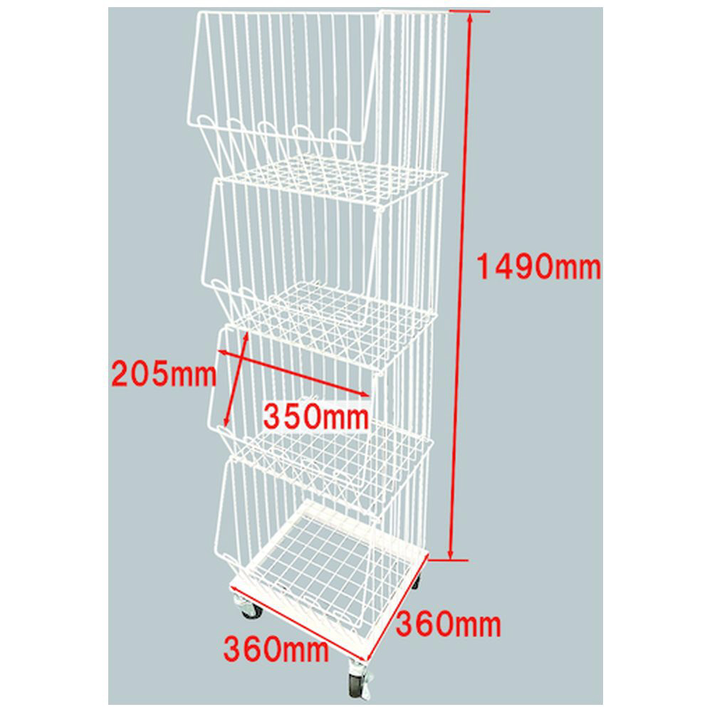 DAIDОHANT 4段スタックカゴ白 W360 TSK-350 キャスター付