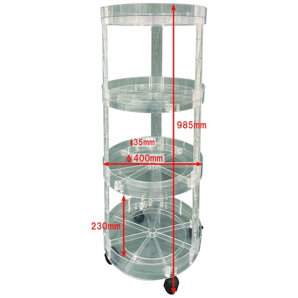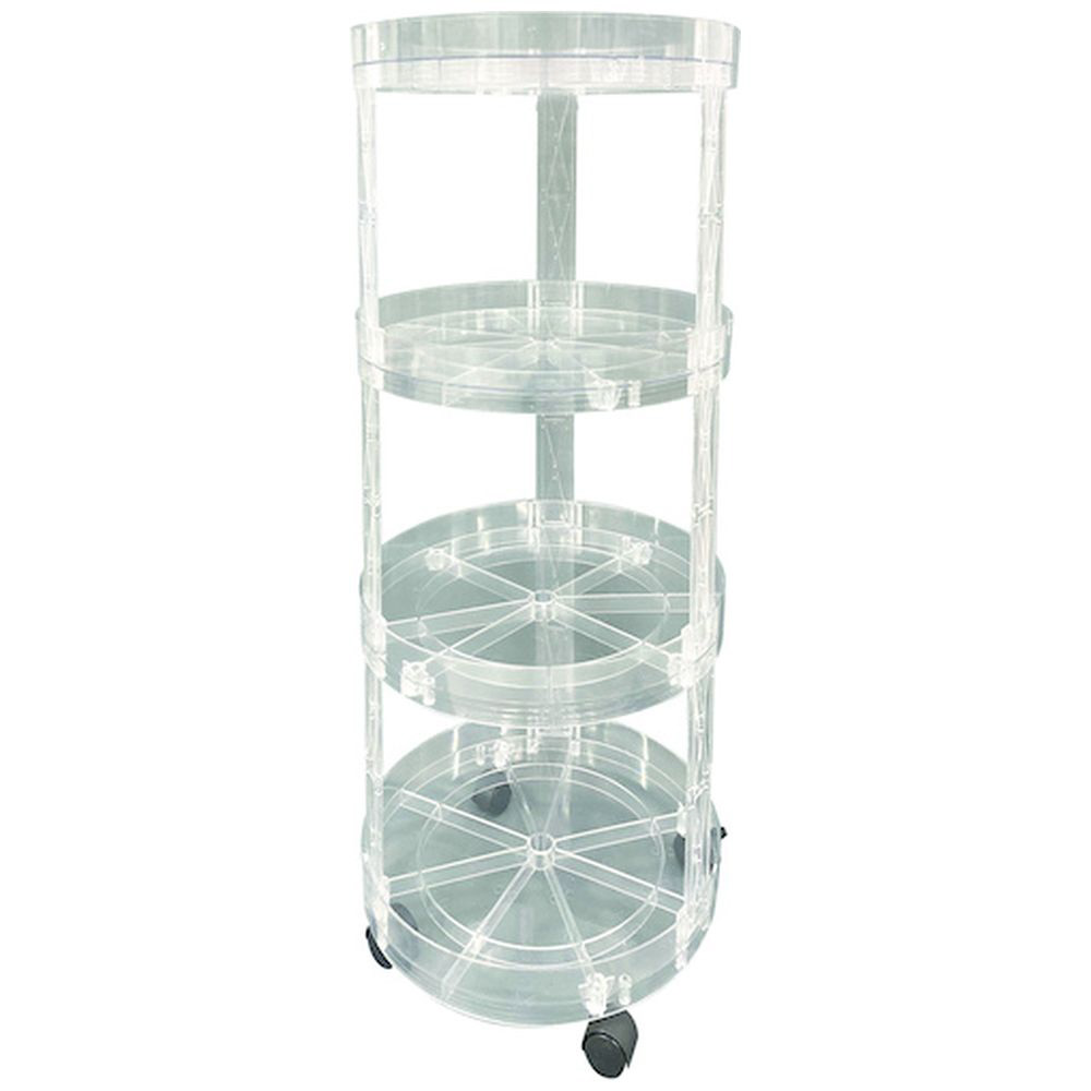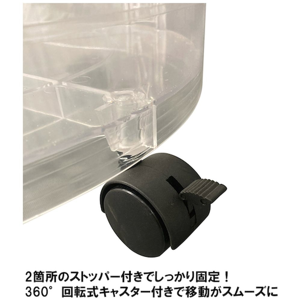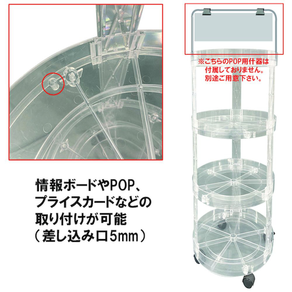 360度回転キャスター付きの軽量樹脂ラック。クリア素材で場所を選ばず、お店やご家庭でマルチに活躍します。POP取り付けも可能です。