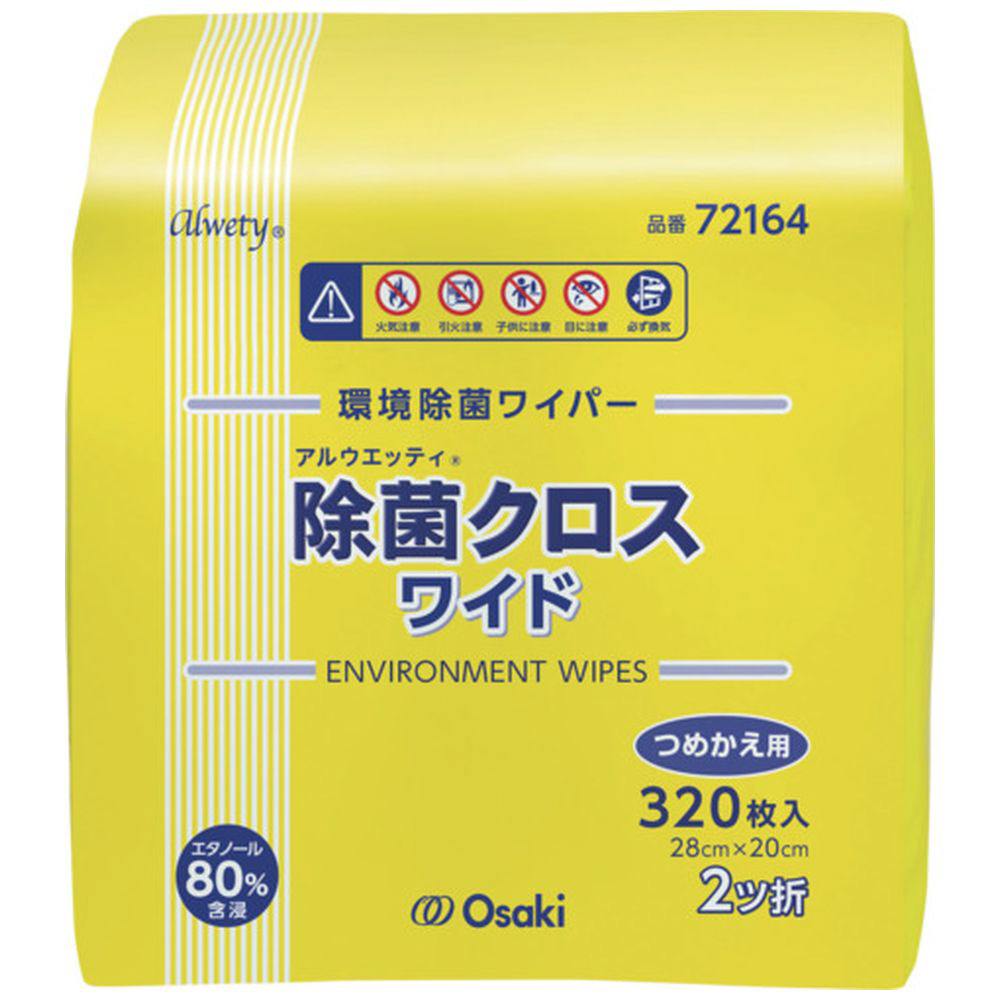 オオサキメディカル 環境除菌ワイパー アルウエッティ除菌クロス ワイド 20cm×28cm 320枚入 詰替