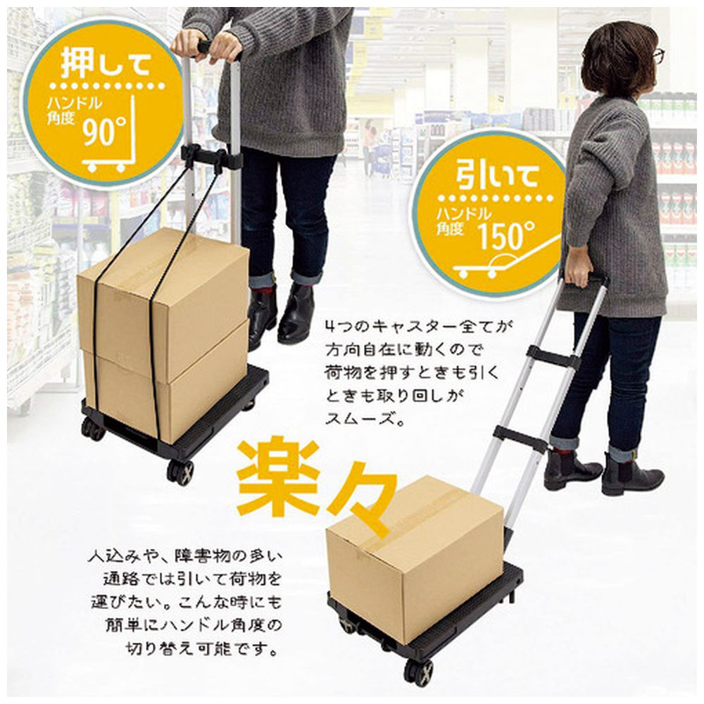 キャスターが自在に動くので荷物を押すときも引きときも取り回しがスムーズな折り畳み式です。