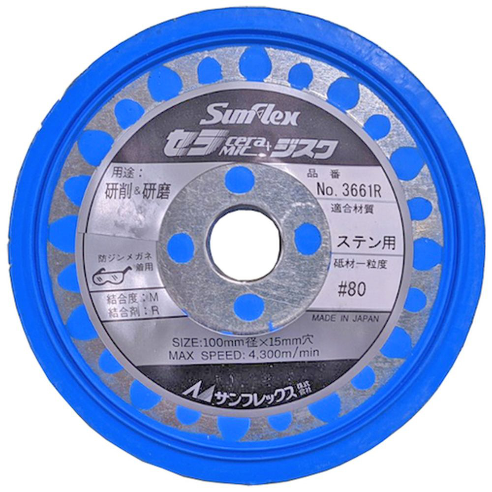 サンフレックス セラジスク ステンレス用#80 φ100×15は、弾性オフセット型ゴム砥石で、ソフトな研磨とスムーズな仕上げを実現します。