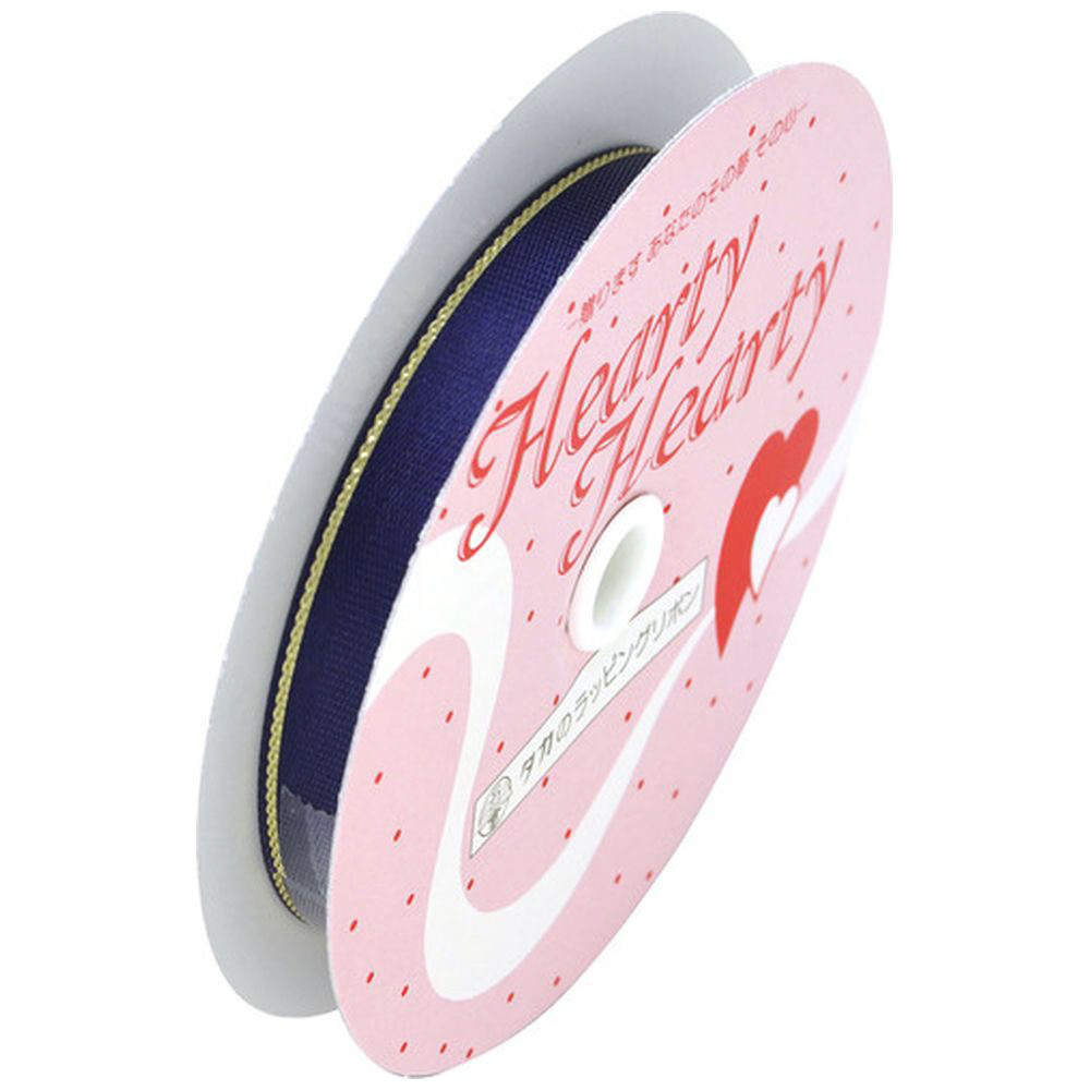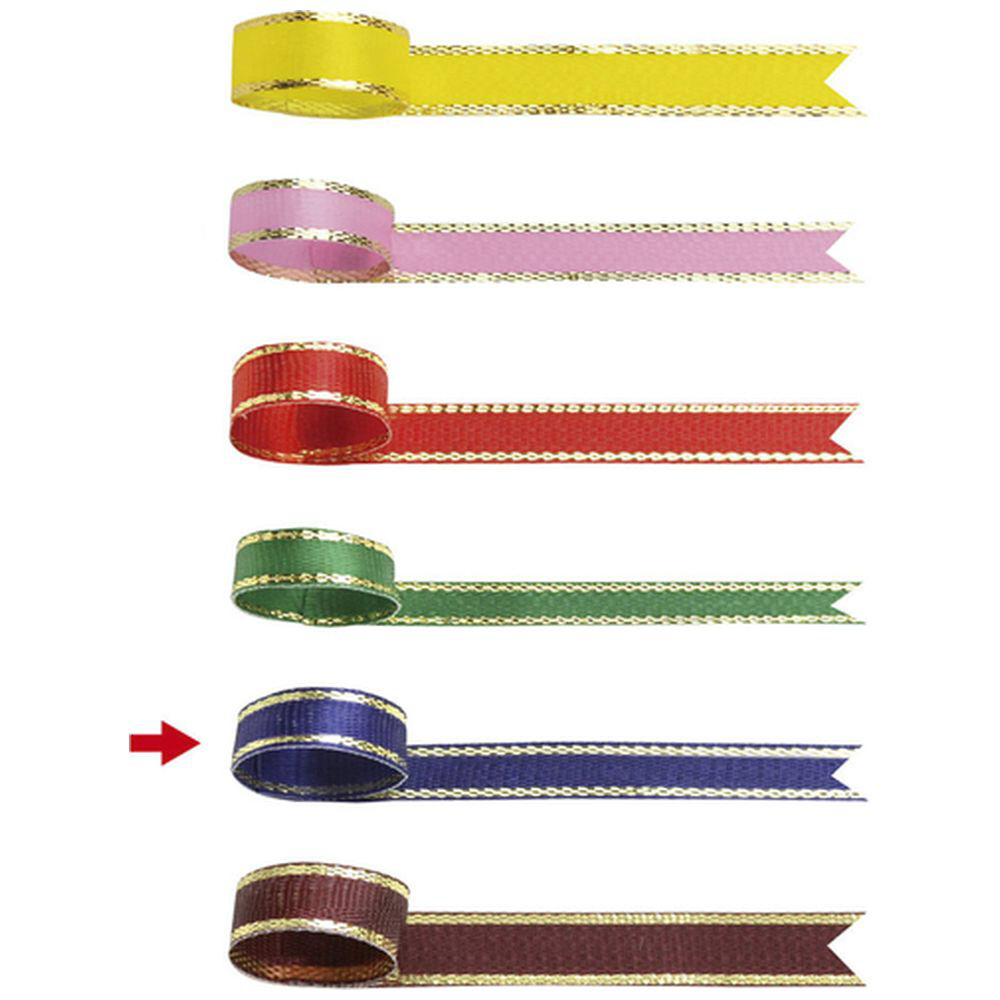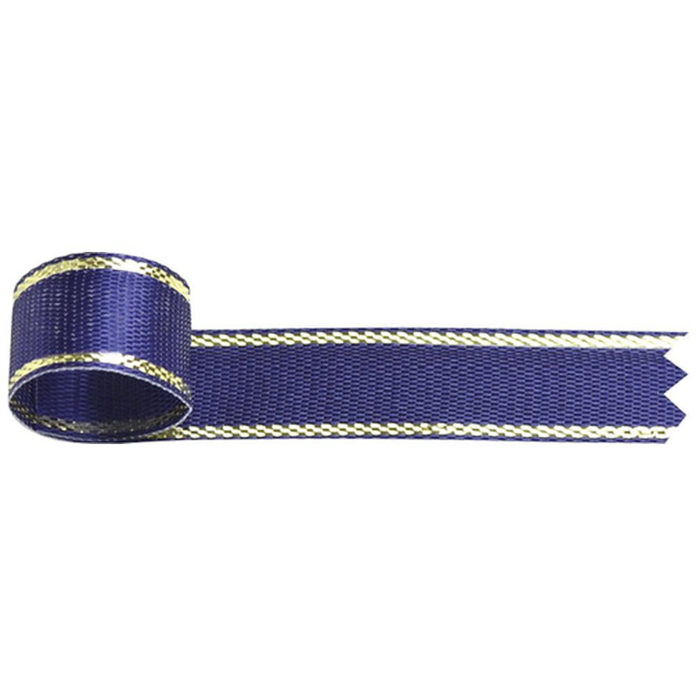 上品な青色のリボン。金ラインがアクセント。幅12mm×長さ10m。