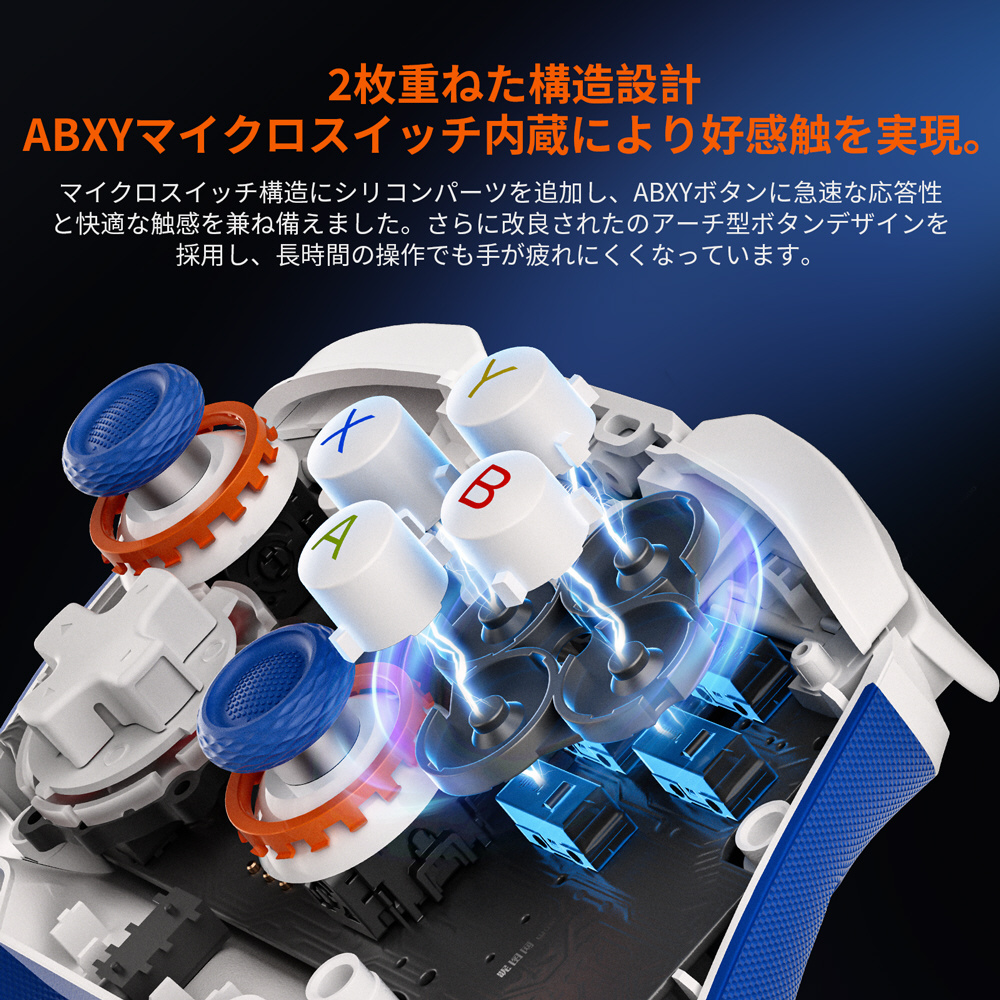 ABXYボタンと十字キーにはシリコンパーツを追加しており、快適なクリック感を兼ね備えています。
