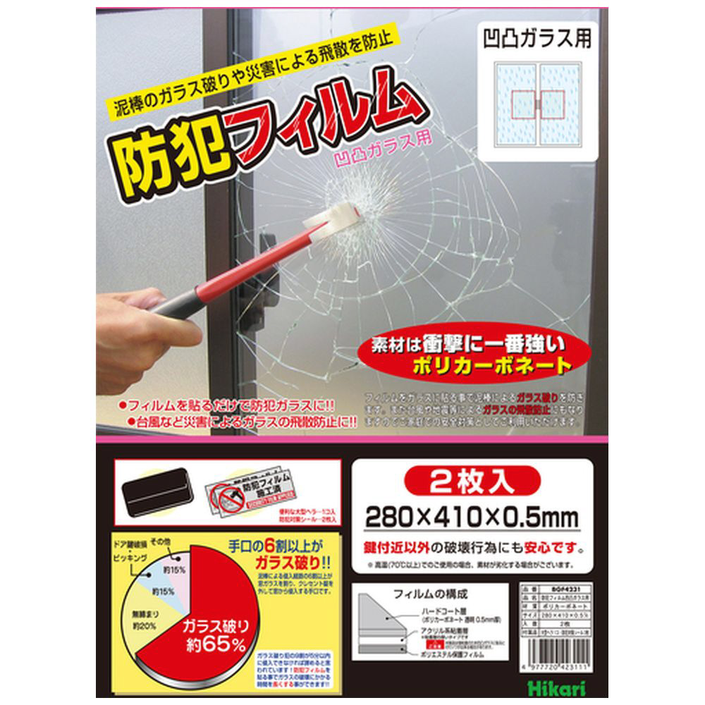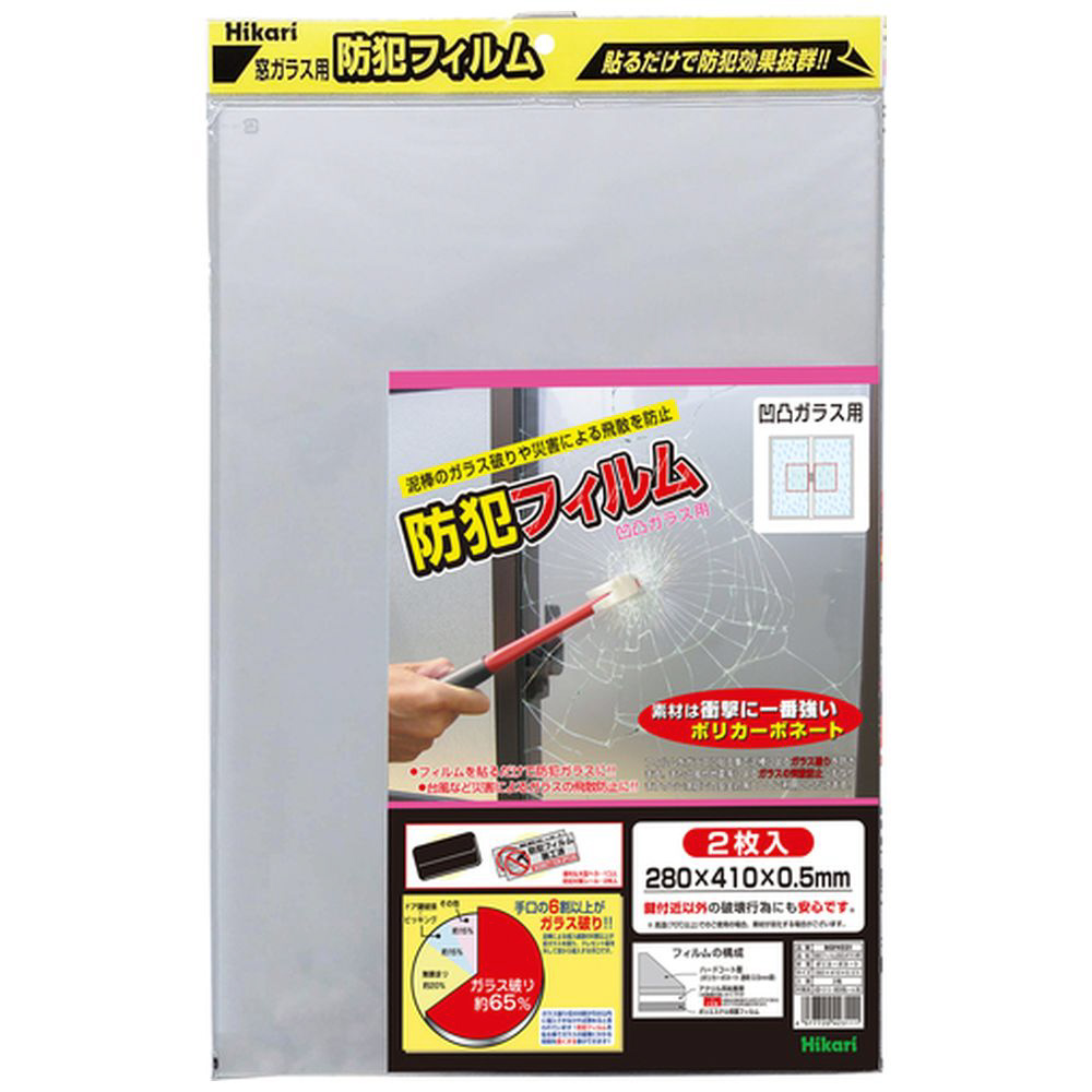 光 防犯フィルム 防犯フィルム 凹凸ガラス用2p W280×H410×0.5mm