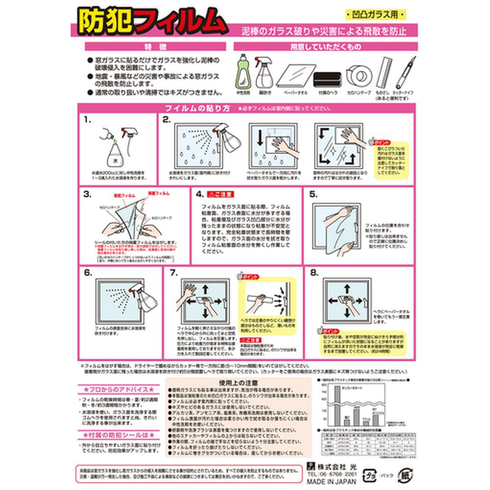 ■フィルムをガラスに貼るだけで防犯ガラスになります。