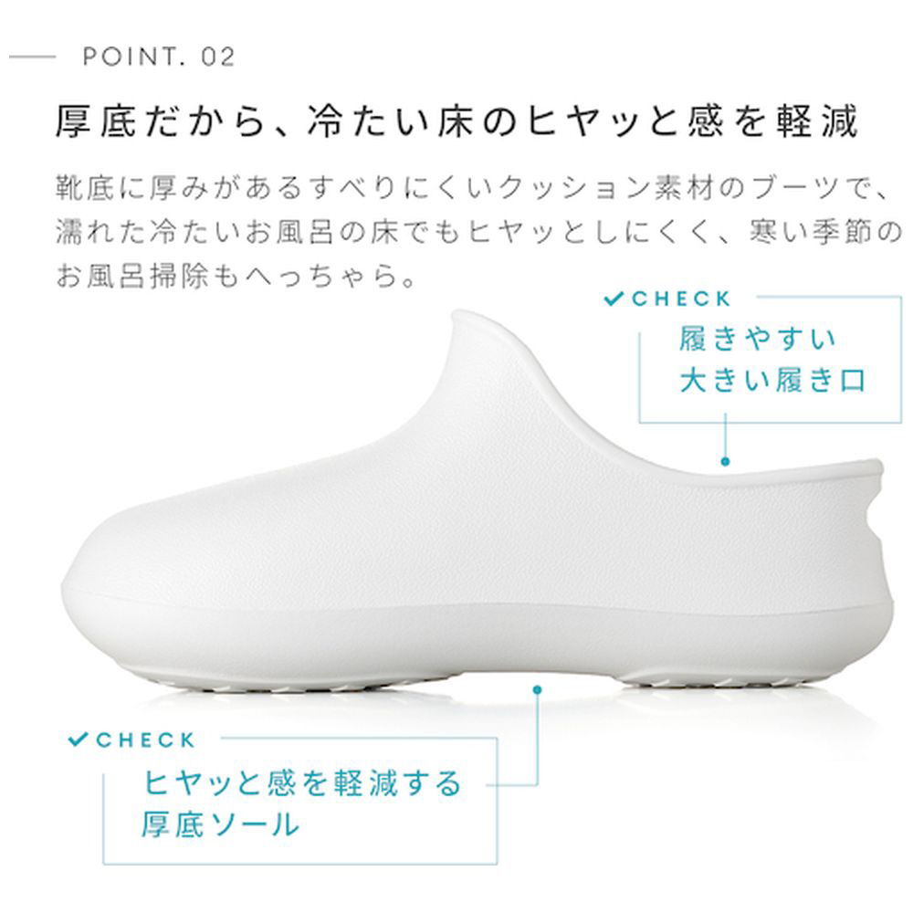 ■甲高で前からの水撥ねをガードして足が濡れにくくなります。