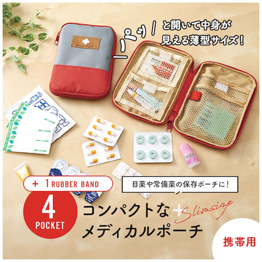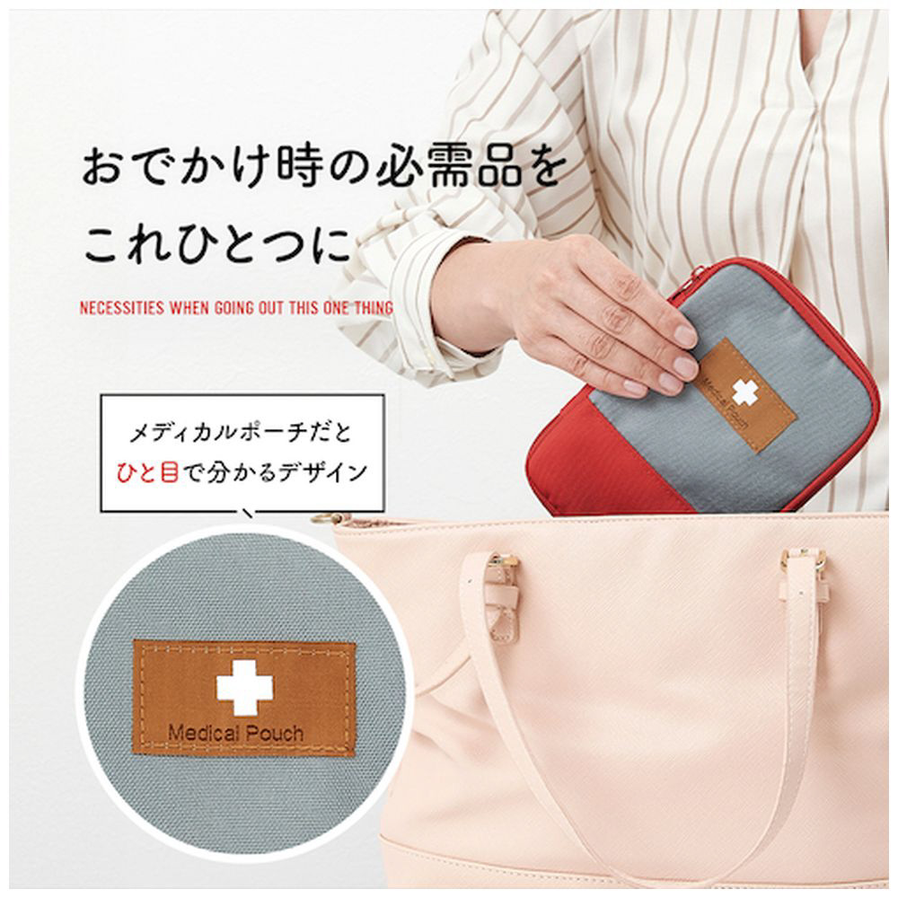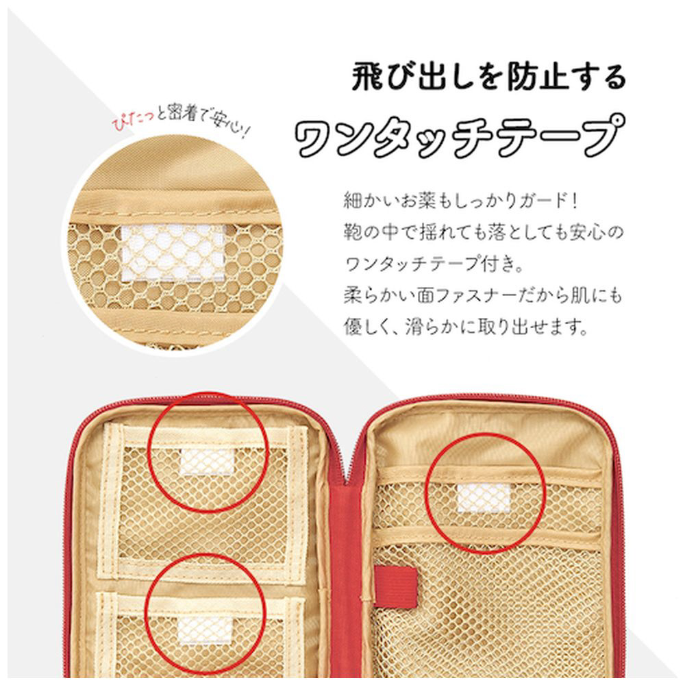 携帯しやすい薄型メディカルポーチ。常備薬や救急用品を整理して収納でき、旅行や防災にも便利。様々なアイテムを用途別に収納できます。