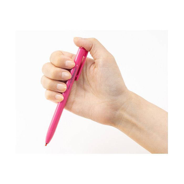 キャップがなくても乾かない(※)モイストキープインクなので、どこでも気軽に使えるノック式の蛍光ペンです。