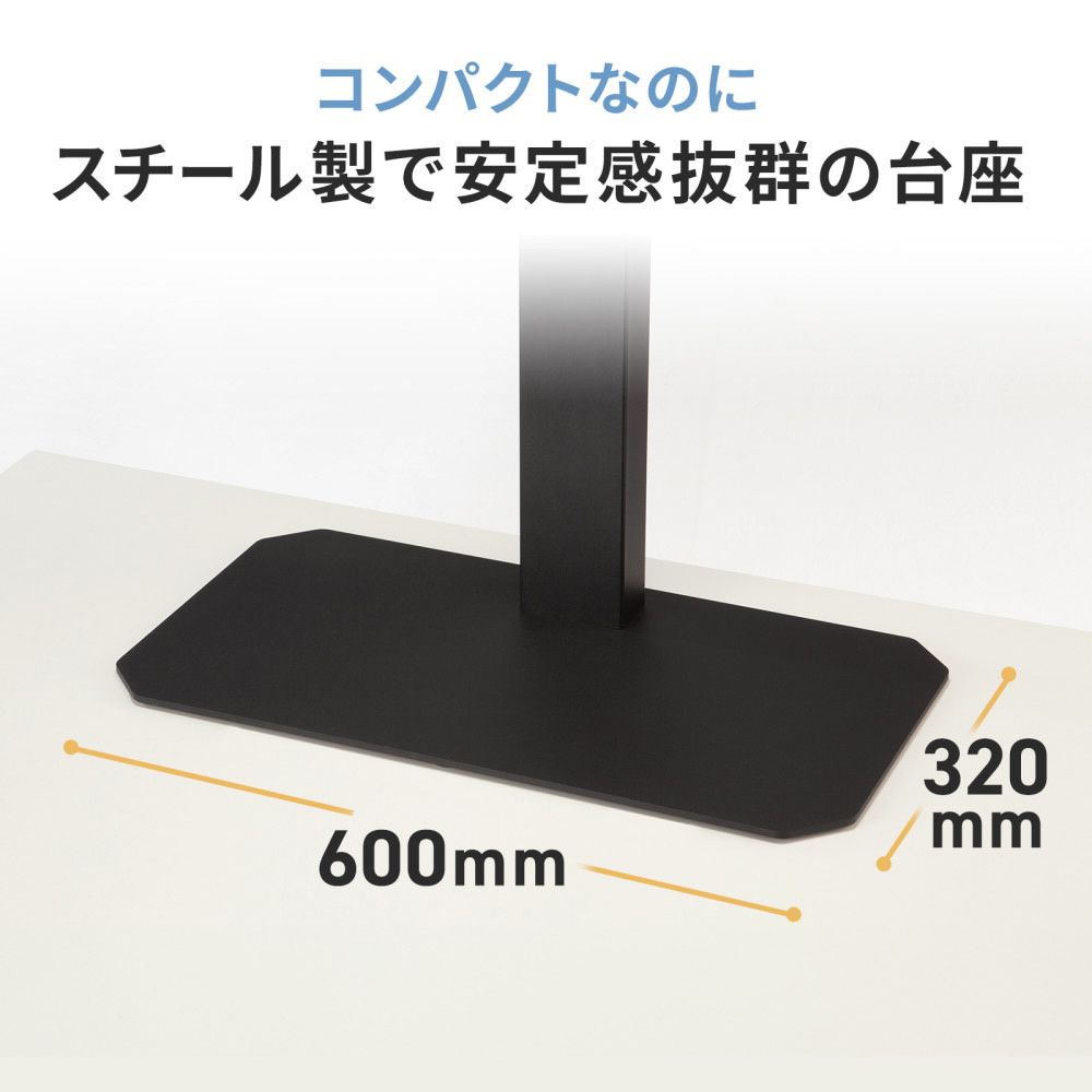 上下左右の角度調整と3段階の高さ変更が可能なスチール製卓上テレビスタンド。