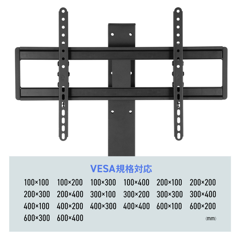 ●VESA規格100×100、100×200、100×300、100×400、200×100、200×200、200×300、200×400、300×100、300×200、300×300、300×400、400×100、400×200、400×300、400×400、600×100、600×200、600×300、600×400mmに対応します。