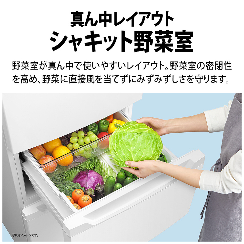 スリム幅&真ん中レイアウト野菜室。前後左右に設置できる果物ケース搭載。