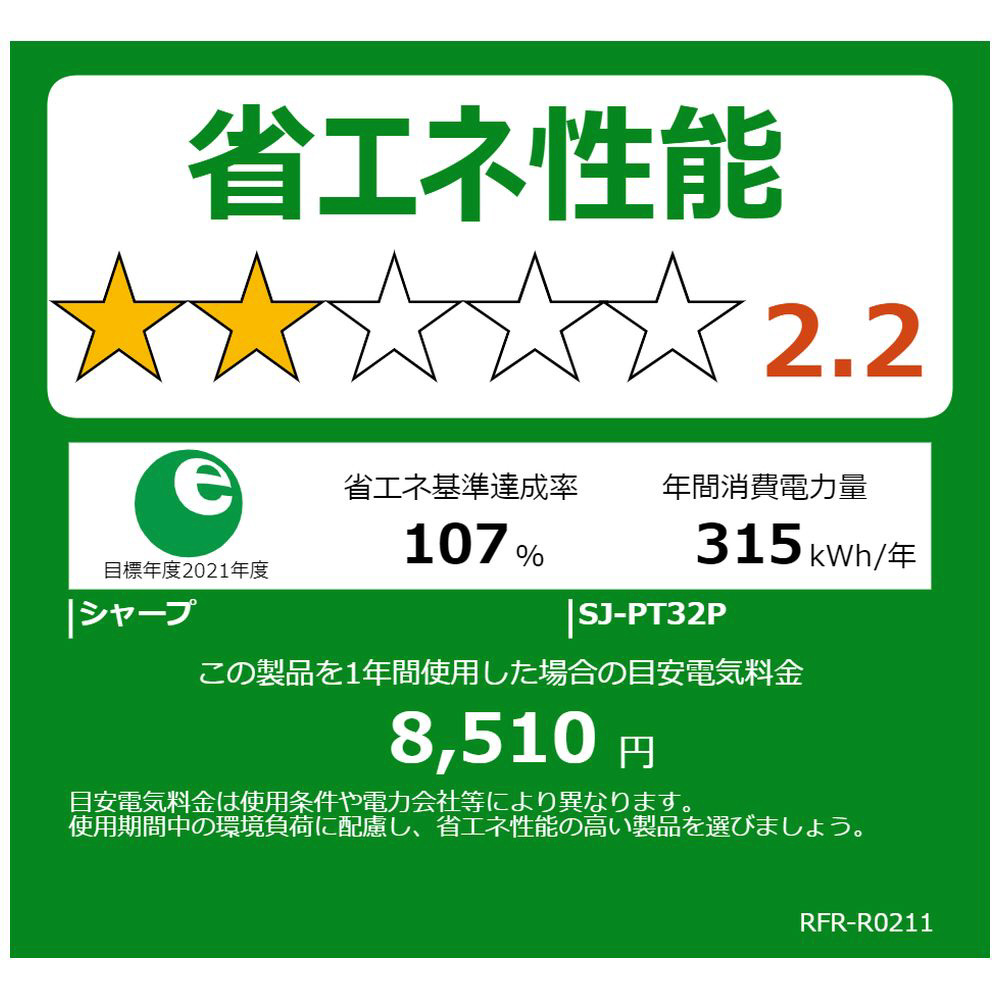 冷蔵庫 マットホワイト SJ-PT32P-W [幅54.4cm /317L /3ドア /右開きタイプ /2024年]