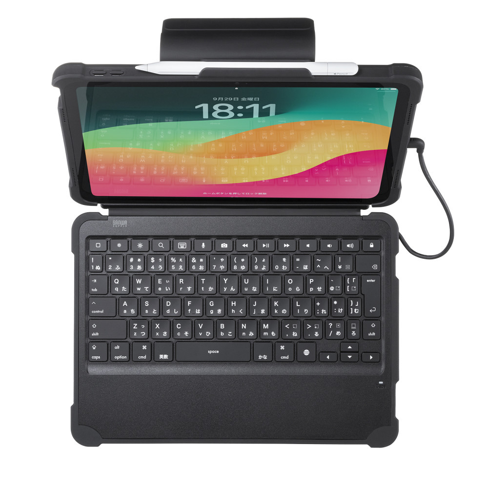 iPad 第10世代(2022年モデル)に対応したタイプC接続できる専用ケース付キーボード。iPadとキーボードはマグネットで着脱可能。