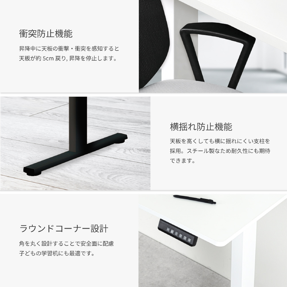 ■衝突防止機能搭載:衝撃を感知し、約5cm昇降が戻り止まります。