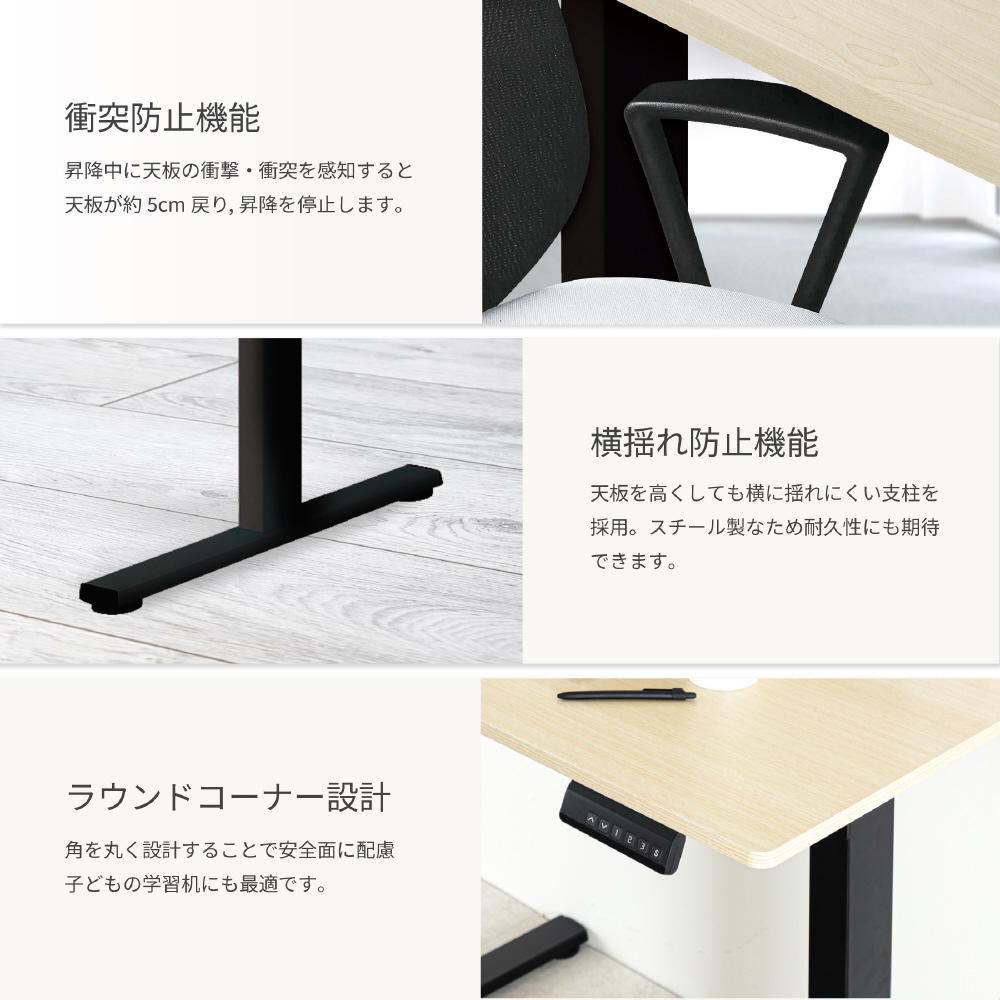 ■衝突防止機能搭載:衝撃を感知し、約5cm昇降が戻り止まります。