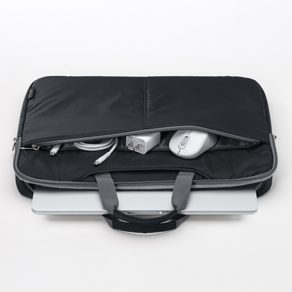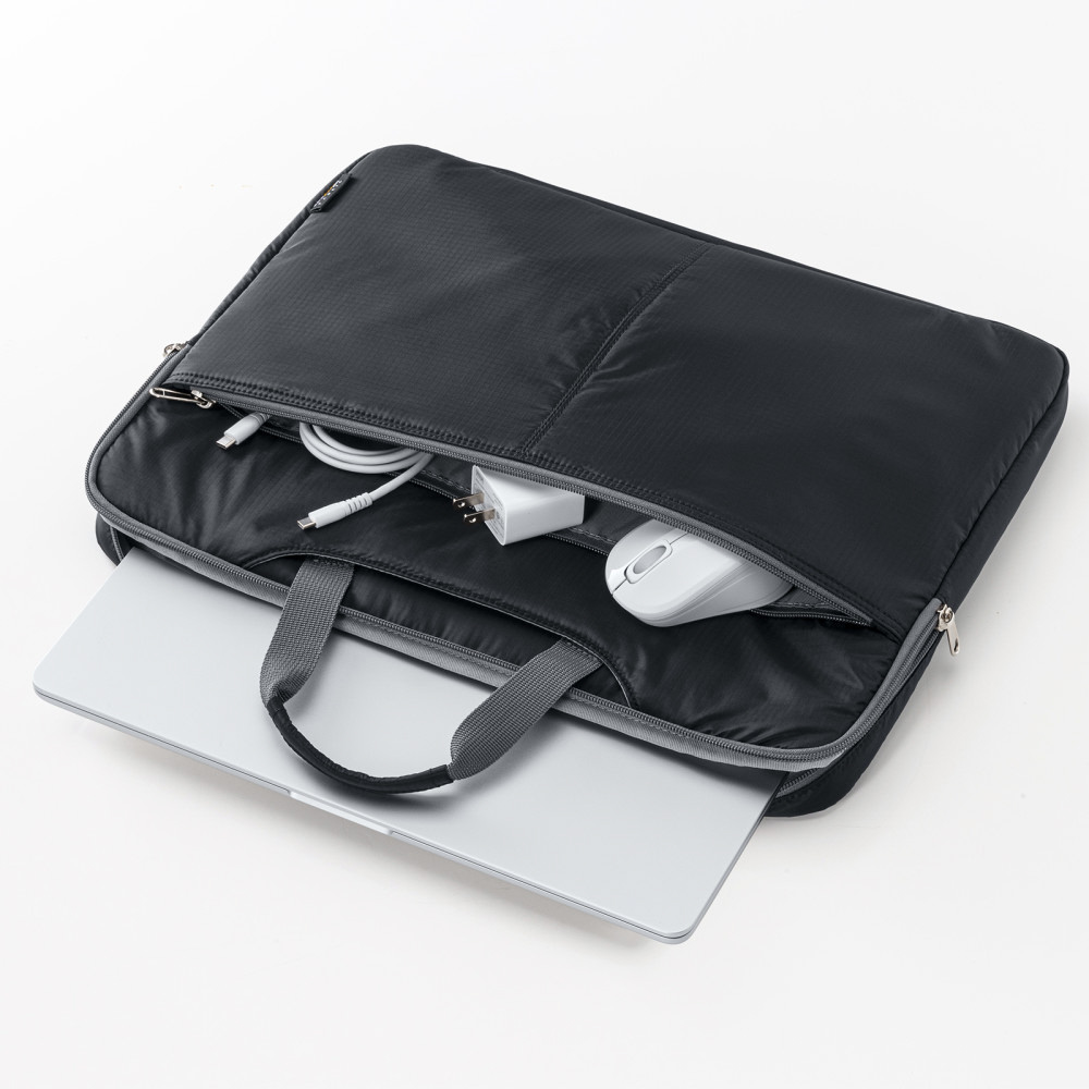 ■アダプタやマウスなどが収納できるファスナーポケット付きです。