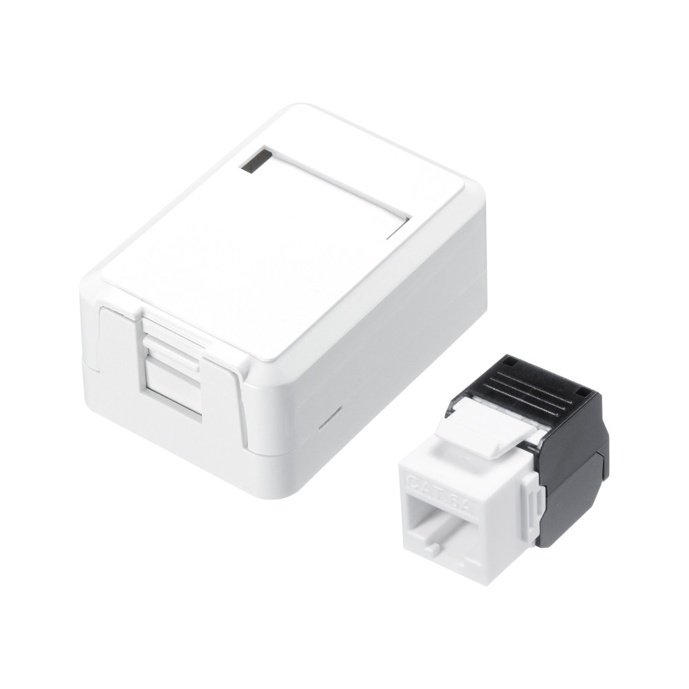 LANケーブルをスッキリ配線、マグネット付きカテゴリ6A対応1ポートローゼットキット。
