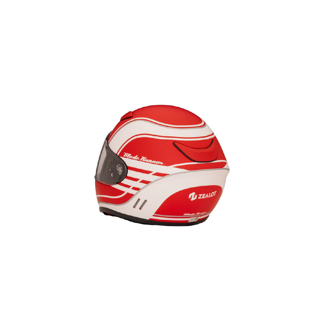 1980?1990年代にリリースされたマシンのカスタム進化に合わせ、ノスタルジックなシェルデザインを持ちながら、現行の性能を融合させたZEALOTを代表するフルフェイスモデルです。帽体部にはFRPファイバーグラスを採用。ライディングフォームをとった際の視界の確保は勿論、空力抵抗、強度をしっかりと加味したシェル設計が魅力です。インテーク、アウトレット共にベンチレーション機能を持ち、快適なライディングをお約束します。