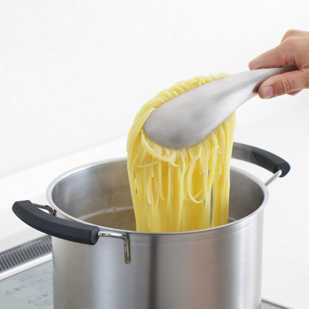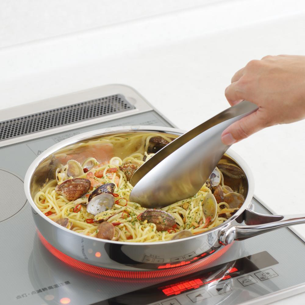 食材をしっかりつかむ形状で、炒め物から盛り付けまで幅広く使えます。