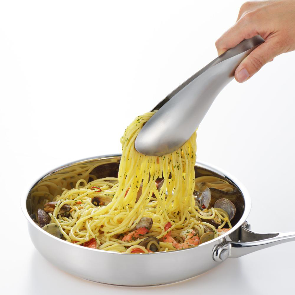 炒め物から盛り付けまで、様々な料理シーンで活躍するステンレストング。