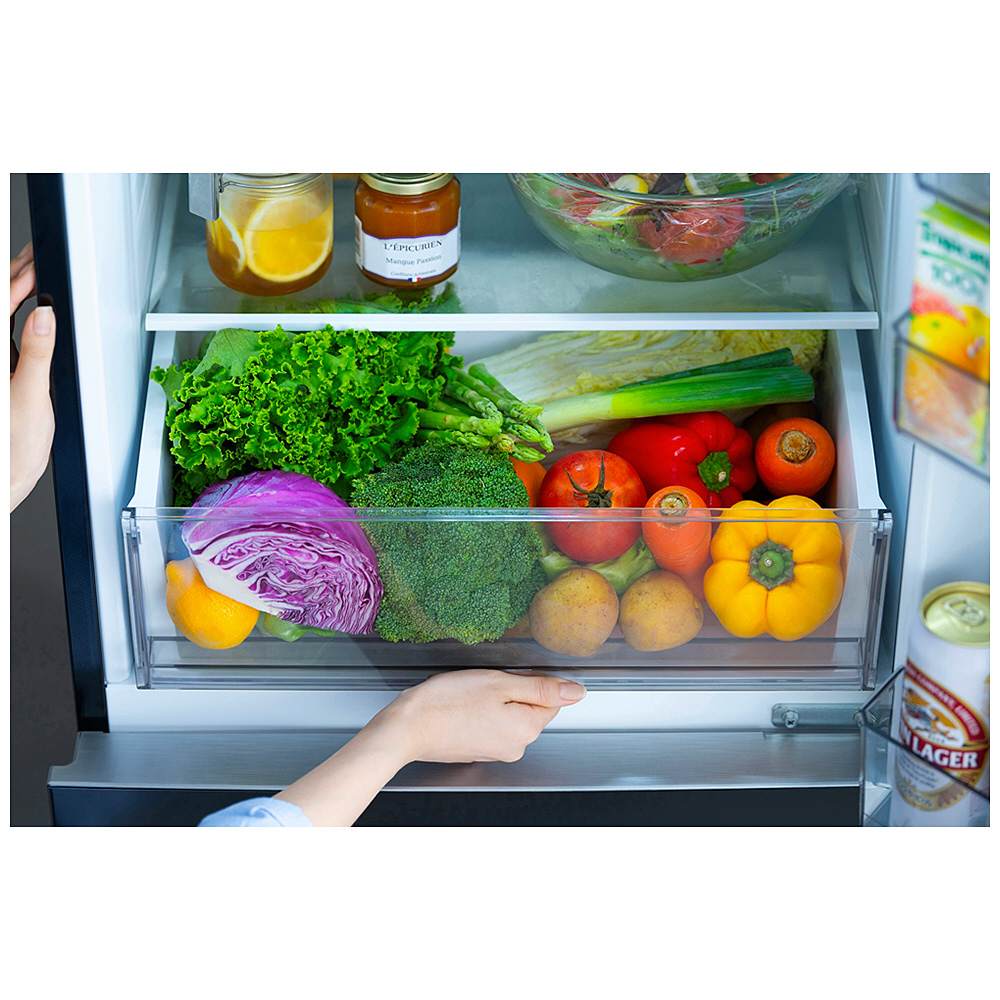 ■冷蔵室はドアポケット小x2・大x1、ガラス棚が3段とマルチケースが付いて、使いやすくなっています。