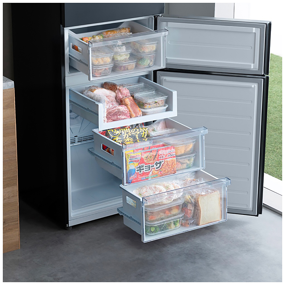 冷凍室123L(うち冷蔵室に切替可能な冷凍室 33L含む)と、定格内容積235Lの半分を占める、大容量冷凍室のため冷凍食品がたくさん入ります。