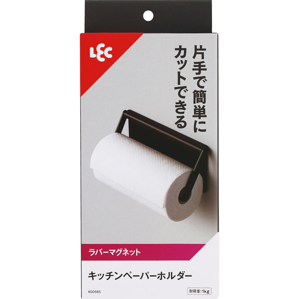 片手で簡単にカットできる。荷重制限:1kg 耐熱温度:80度 対応ロールペーパー:幅280mm、直径160mmまで 紙芯の内径33mm以上。海外製ロールペーパー対応(幅280mm、直径160mmまで)。サビにくいラバーマグネット