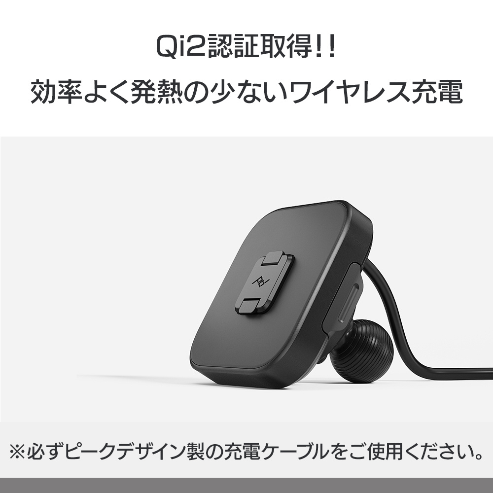 ※USB-A端子、またはバッテリーに直接繋げるSAE端子へ接続する場合は、別売りのピークデザイン製ケーブルキットをご使用ください。なお、Qi2充電規格の電力を得るためには、USB-CもしくはSAE端子のケーブルが必要です。