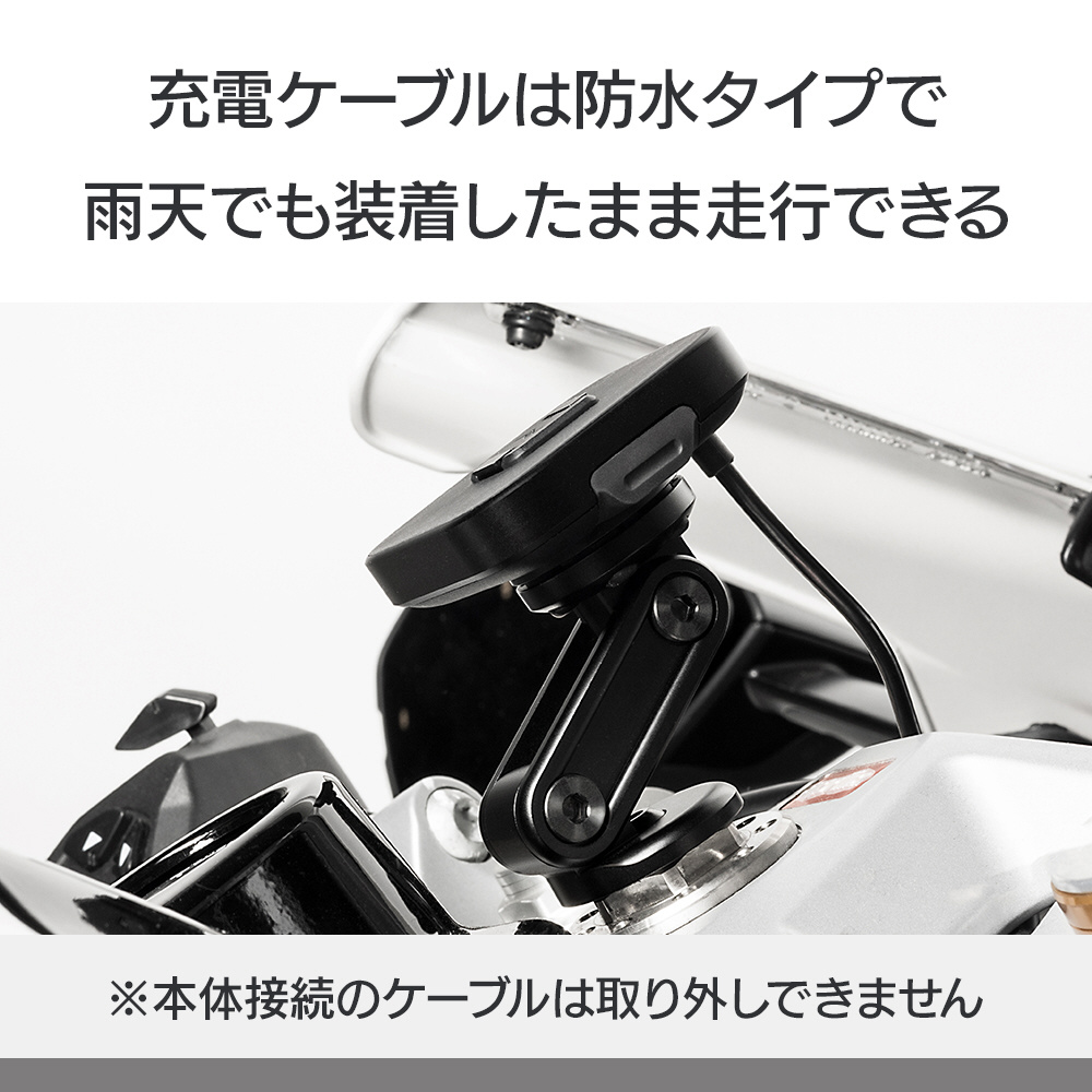 ※USB-A端子、またはバッテリーに直接繋げるSAE端子へ接続する場合は、別売りのピークデザイン製ケーブルキットをご使用ください。なお、Qi2充電規格の電力を得るためには、USB-CもしくはSAE端子のケーブルが必要です。