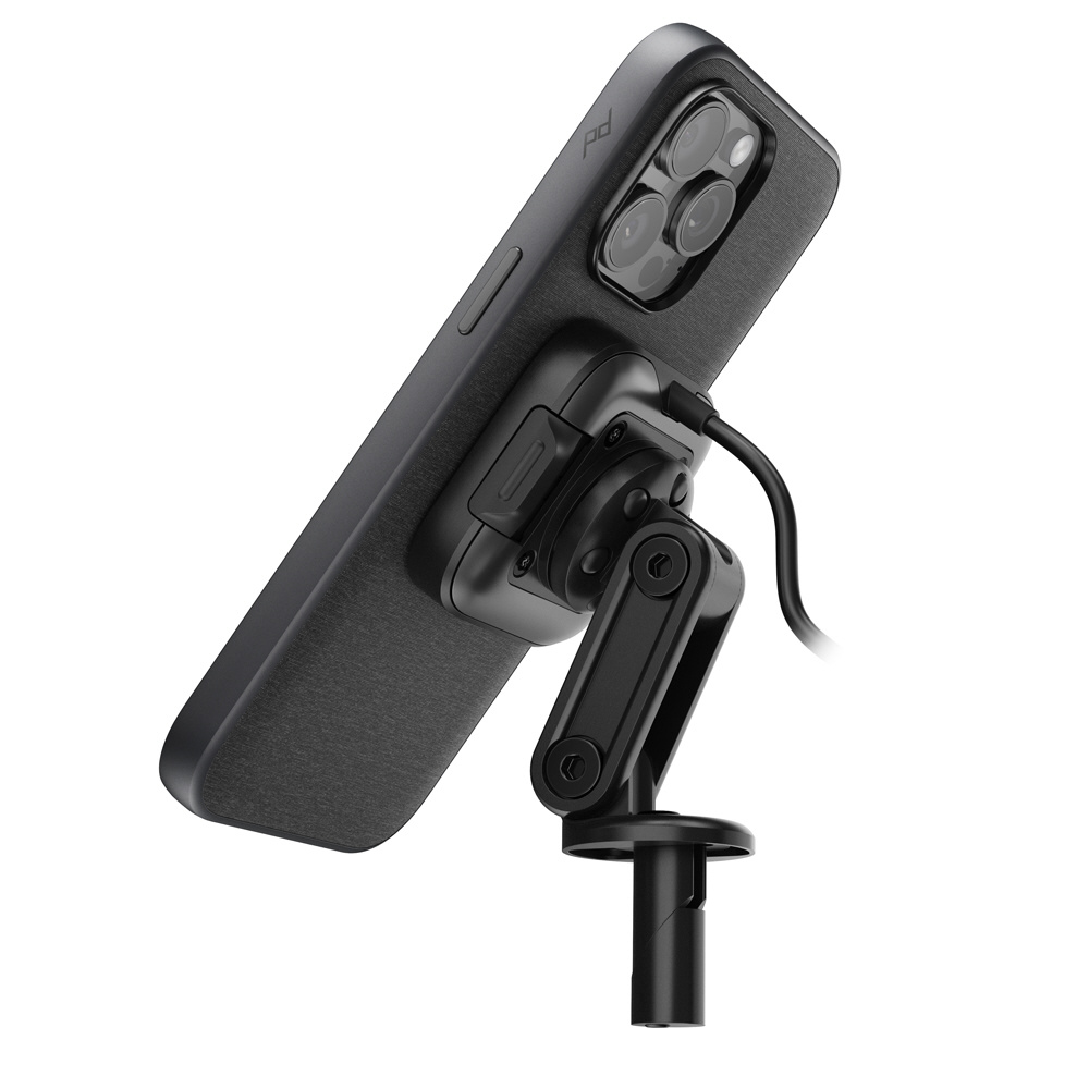 Qi2規格対応のワイヤレス充電機能を備えた、スマートフォン用のステムマウント。